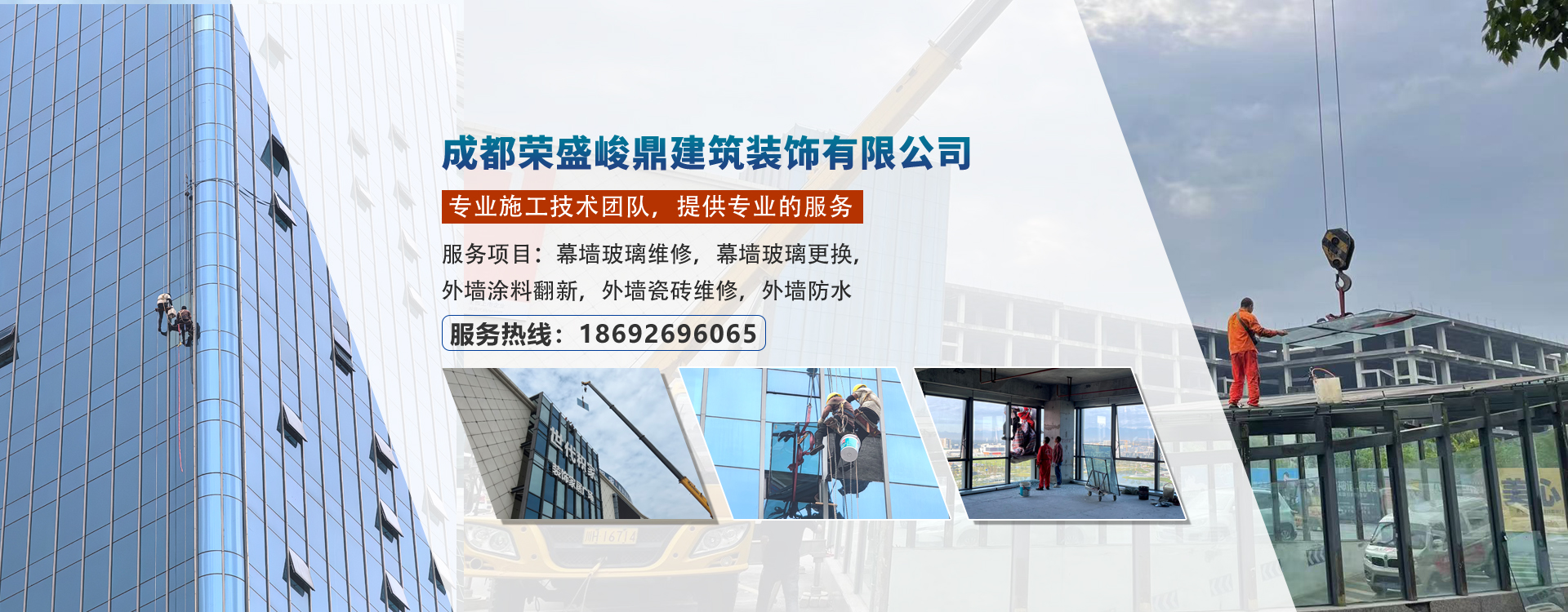 成都榮盛峻鼎建筑裝飾有限公司始終堅(jiān)持發(fā)揚(yáng)工匠精神的專業(yè)施工團(tuán)隊(duì),專業(yè)于舊建筑修繕翻新的研究與實(shí)踐;服務(wù)包括外墻維修、外墻翻新、外墻磚維修、外墻防水處理、內(nèi)外墻涂料維修、幕墻玻璃維修、門...